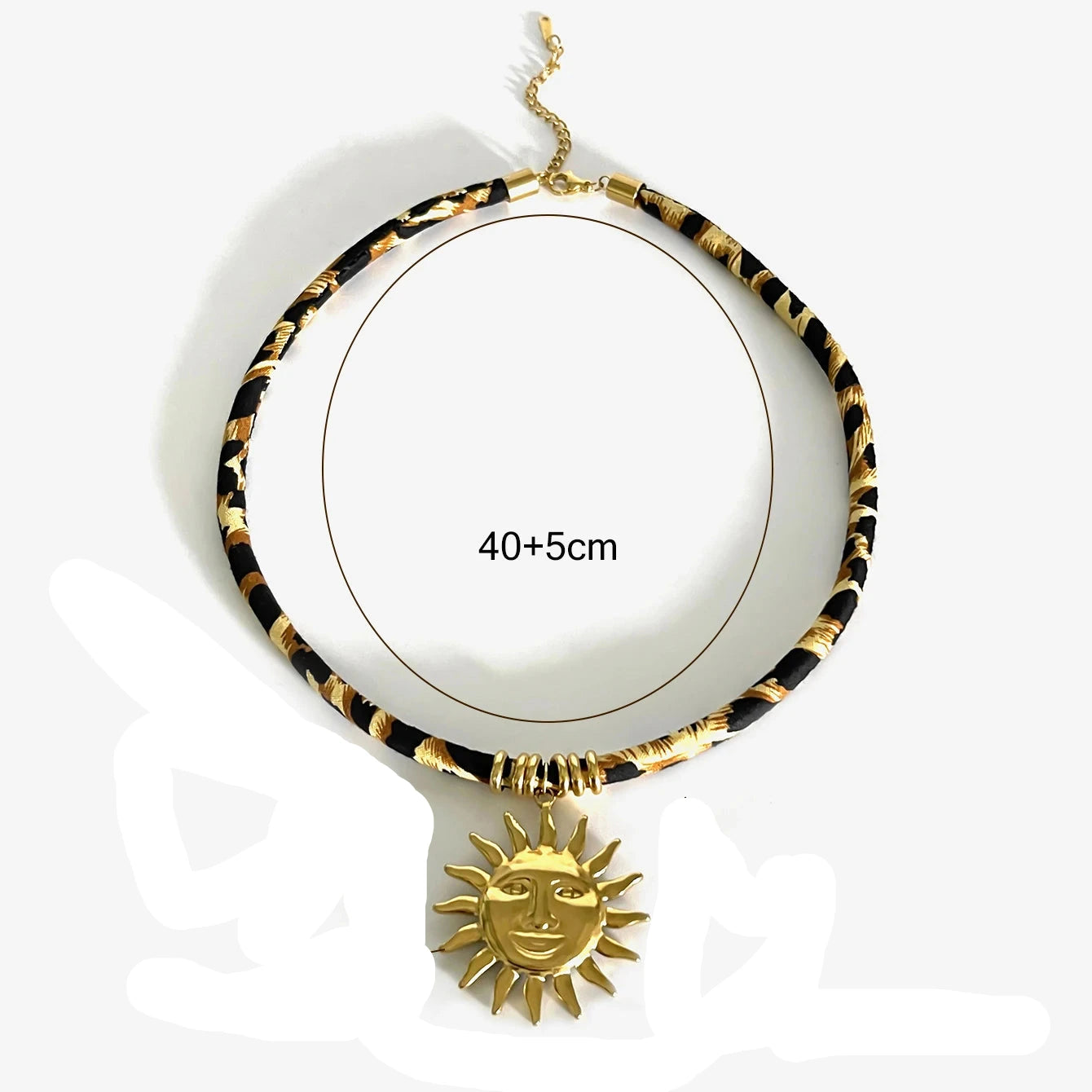 Gefertigt aus 18K vergoldetem Edelstahl und kombiniert mit handgearbeitetem Stoff-Detail, ist dieses Piece robust, hypoallergen und ein absoluter Eyecatcher – perfekt für Festivals, Partynächte und mutige Alltags-Looks.