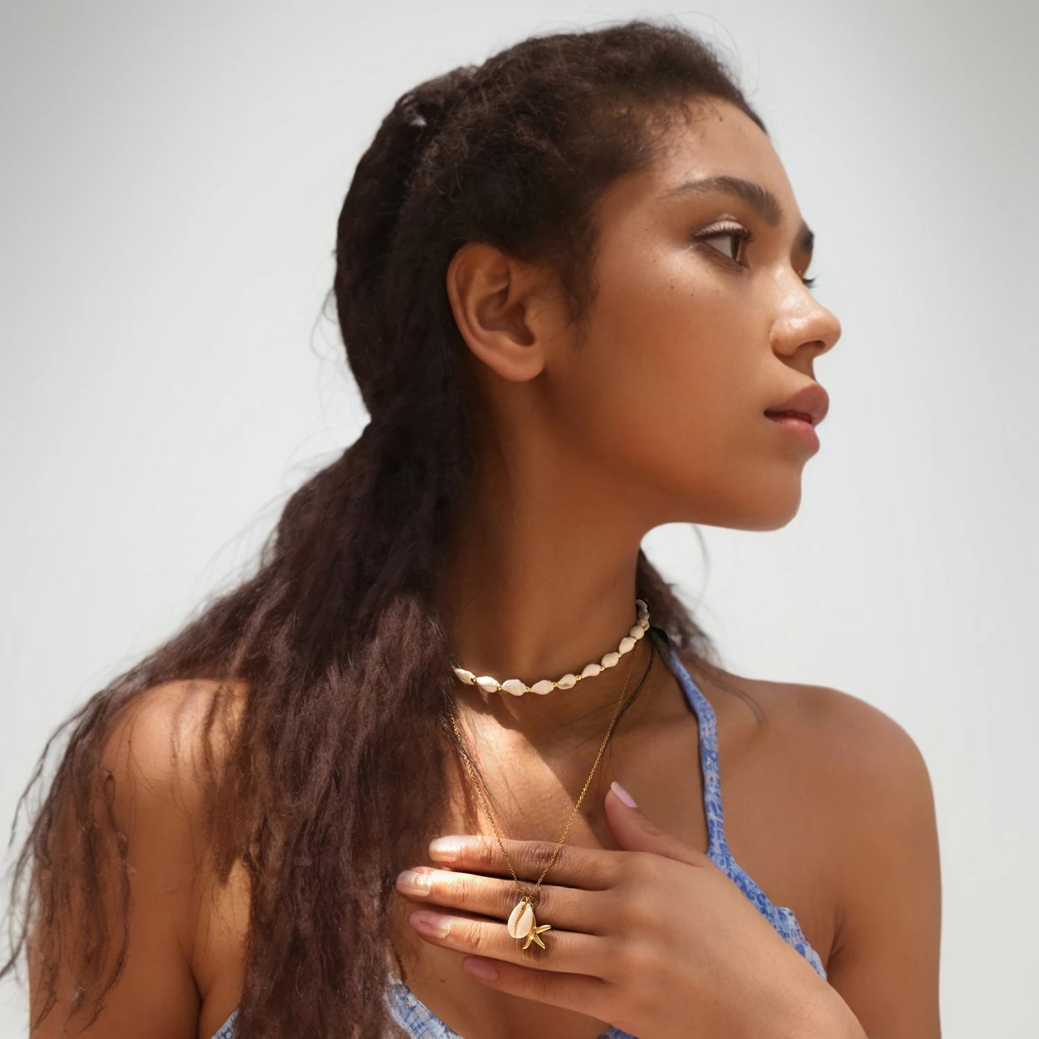 Ein Schmuckstück wie ein Strandspaziergang – die „Ocean Treasures Necklace“ vereint drei Symbole des Meeres: Schildkröte, Seestern und Muschel. Jedes Detail ist eine Hommage an Freiheit, Natur und die unendliche Schönheit des Ozeans.