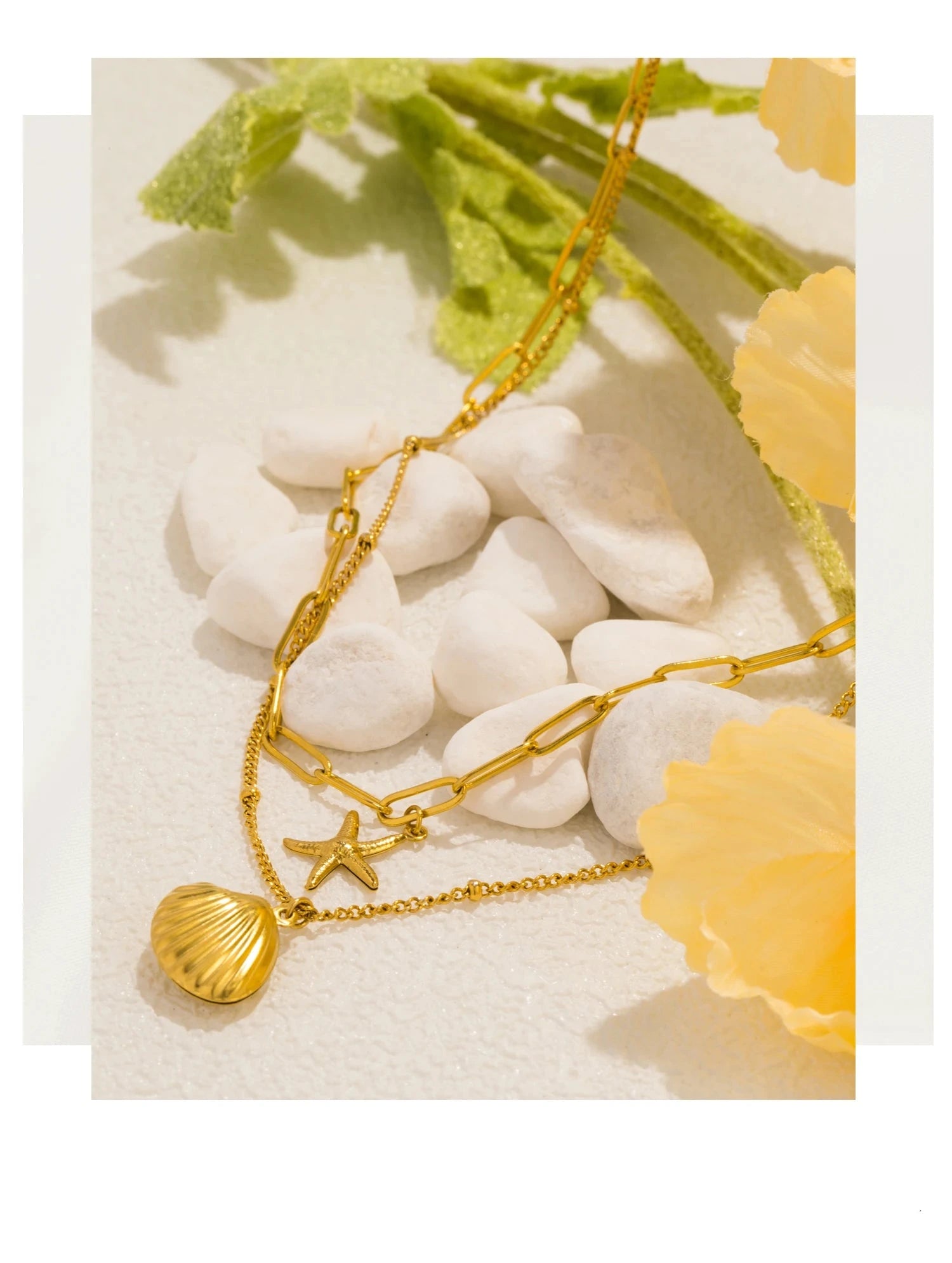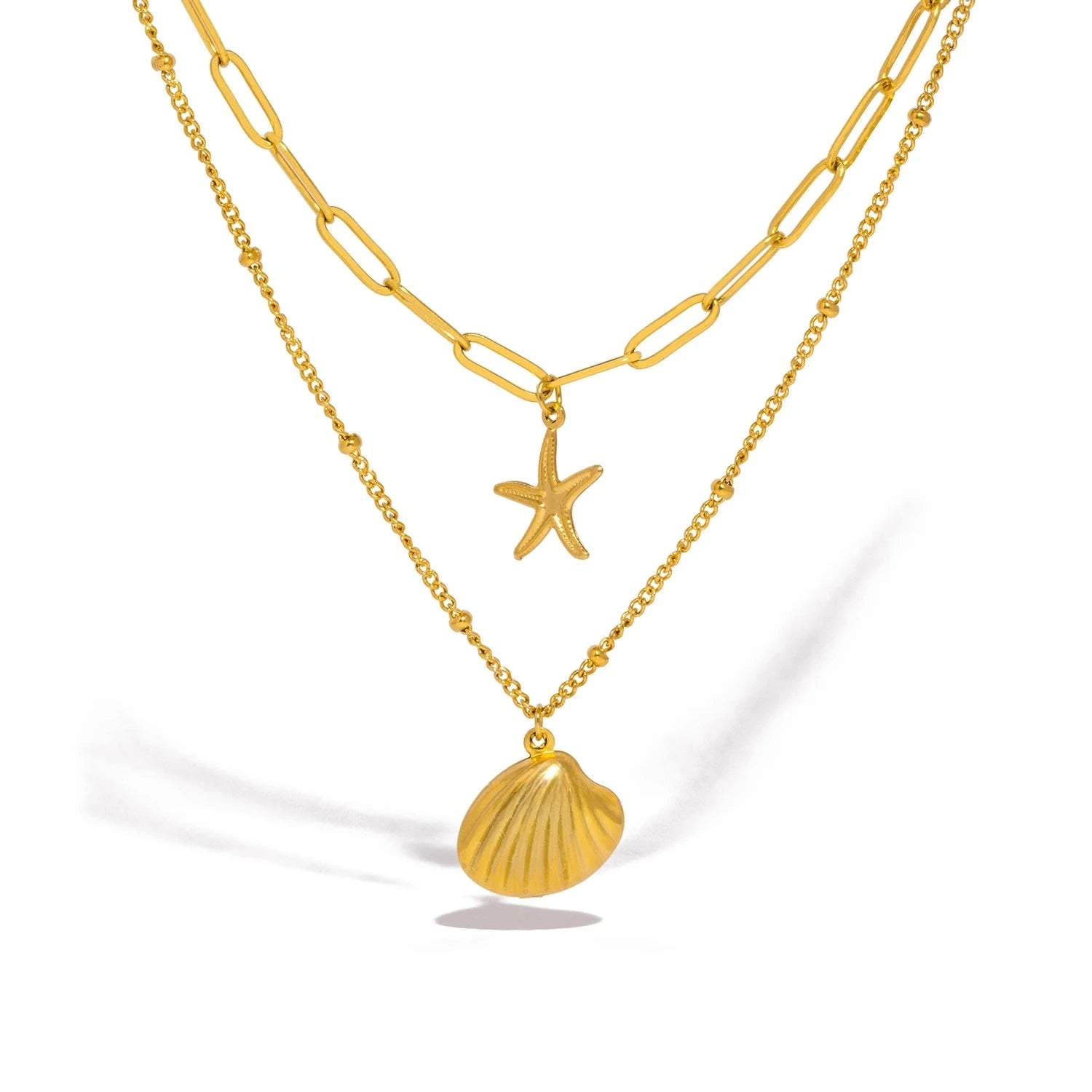 • ✦ Doppel-Layer-Design mit Seestern- & Muschel-Anhänger